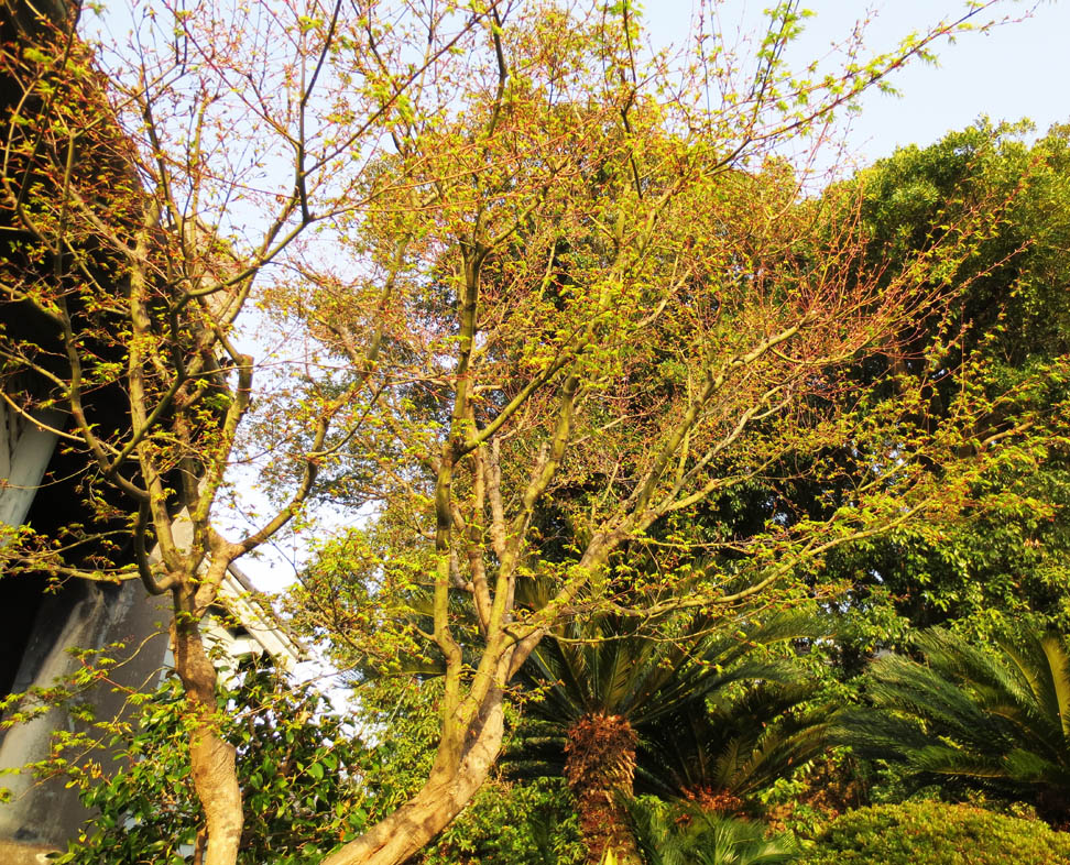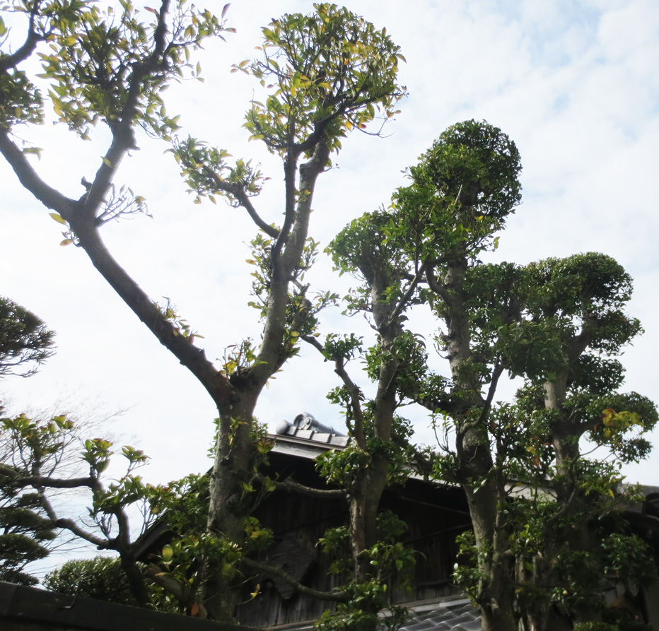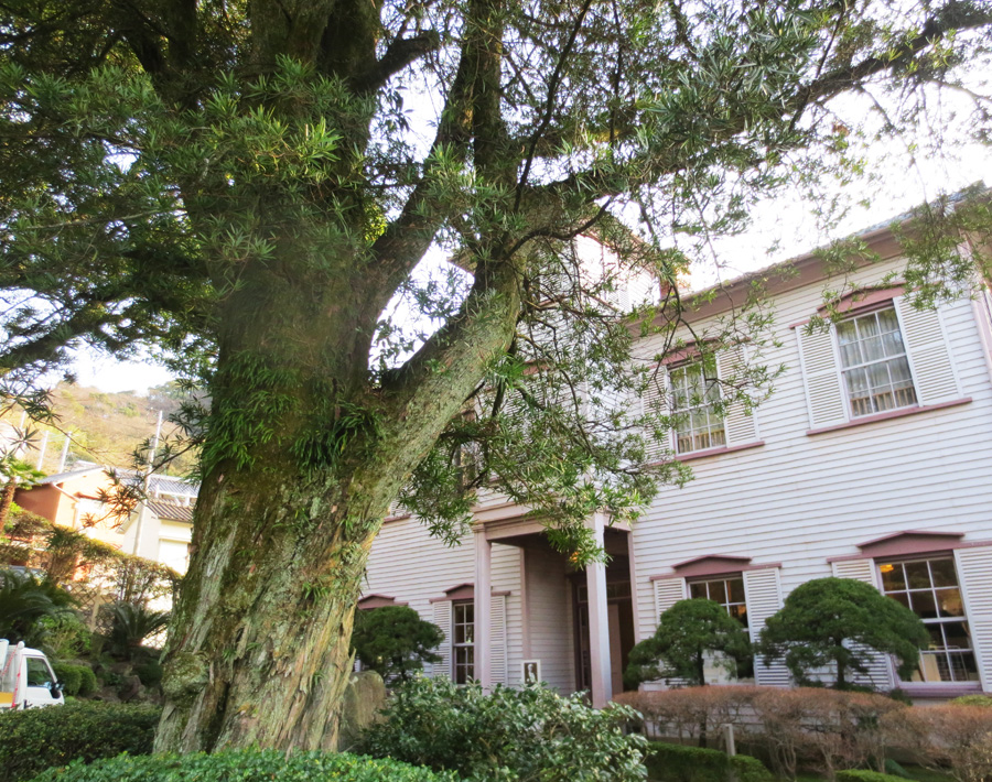 因長崎位於日本群島的最南方,其植物與京都、大阪、東京等地不同,主要百年老樹有: 樟樹、榕樹、羅漢松、鐵樹、青楓、山茶花等,僅少數庭院內引入北方的柏樹與黑松。